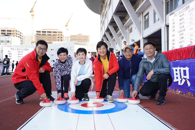 本屆運(yùn)動(dòng)會(huì)共設(shè)有六大比賽項(xiàng)目,分別為華虹速度(100米跑步),頂立“芯”天地(5人撐桿頂盤(pán)跑),同“芯”同行(5人聯(lián)合運(yùn)球投籃),一片冰“芯”(旱地冰壺),砥礪前行(8人大型組合接力)及眾志成“芯”(多股拔河),各隊(duì)隊(duì)員們凝心聚力、團(tuán)結(jié)一心、奮發(fā)拼搏,賽出風(fēng)格,賽出水平。
