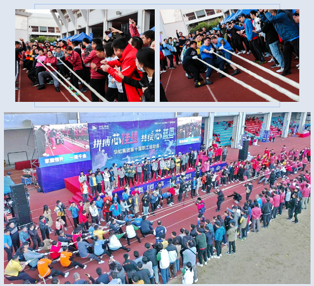 在眾志成“芯”拔河項(xiàng)目環(huán)節(jié),本屆運(yùn)動(dòng)會(huì)特別使用三根布繩凝結(jié)成一股的多股拔河繩子代替?zhèn)鹘y(tǒng)的單根麻繩,激勵(lì)廣大華虹人擰成一股繩,共使一處勁。由華虹宏力、研發(fā)中心、華虹計(jì)通、集團(tuán)總部組成的聯(lián)隊(duì)經(jīng)過(guò)兩輪激烈比拼最終勝出。
